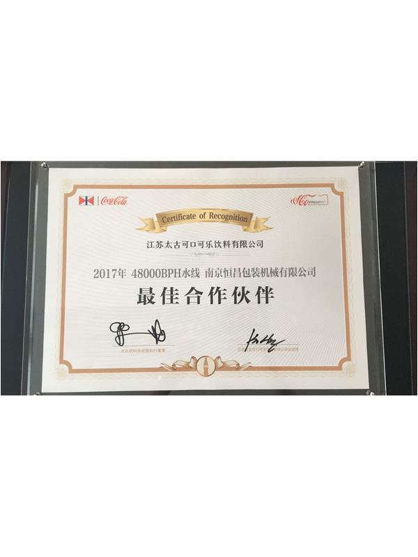 南京恒昌包裝作為后段整包商,在江蘇太古可口可樂48000bph水線項(xiàng)目中獲得“最佳合作伙伴”殊榮!